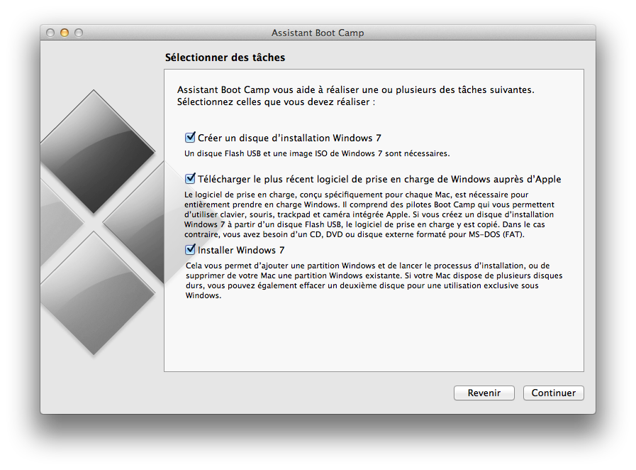 Une fois que c’est fait, il suffit de lancer l’assistant Boot Camp et ça devrait fonctionner.