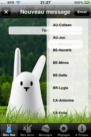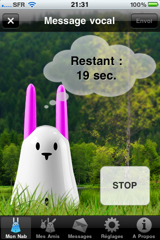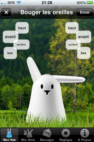 NabazTouch est une application complète, qui propose une interface efficace. En dessous, des onglets permettant d’accéder au lapin, aux amis du lapin, aux messages et aux réglages.