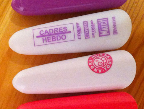 Dans les oreilles, il y a quelques modèles rares mais aussi des modèles sérigraphiés pour des marques. J’en possède une paire destinée à la distribution avec des journaux, d’autres ont été produites pour des agences (Nextedia) ou pour des séries spéciales (Nabaztag by Andre).