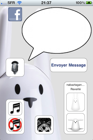 Premier bon point, Coniglio est compatible iPhone 4 et offre donc des images très fines sur l’écran « Retina ». Pour le reste, c’est assez efficace : la page d’accueil offre l’envoi de messages, la possibilité d’envoyer des enregistrements audio, deux boutons pour réveiller ou endormir le lapin, une icône pour les réglages et deux icônes pour la radio, avec quelques stations (culturelles) déjà choisies.