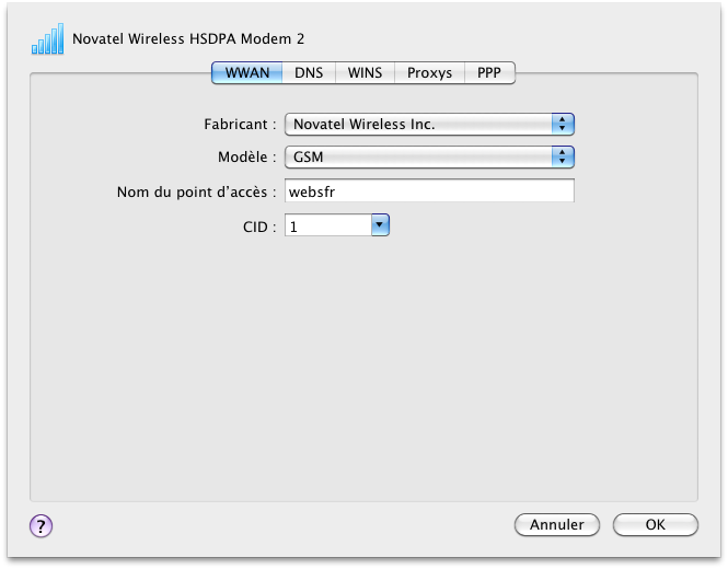Les réglages (dans les Préférences système) sont classiques, mais suffisant. Ils permettent notamment de régler le point d’accès (APN) obligatoire pour les abonnements data et qui varie en fonction des offres.