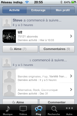 Deuxième nouveauté, Ping. Le réseau social pour la musique s’utilise dans l’application iTunes, avec un nouvel onglet.