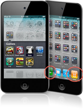 J’en parlais hier sur Twitter, Apple laisse de petites erreurs dans ses pages. Comme on le voit, ce sont des images d’iOS 4.1 pour iPhone, sur un iPod touch 4G. Et ce dernier n’a normalement pas d’icône iPod ni d’icône téléphone…