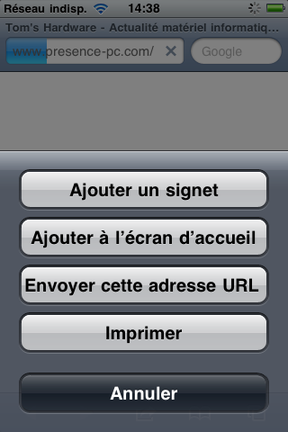 On voit qu’il est possible d’imprimer depuis les applications (ici Safari) et de déterminer le nombre de copies.
