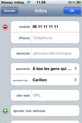 Bonne nouvelle, iOS 4.2 bêta 1 permet de choisir une sonnerie de SMS personnalisée pour chaque contact. Attention, pas une sonnerie qu’on a achetée installée à la main, uniquement une des sonneries proposée par Apple à la base. Le test a été mis à jour.