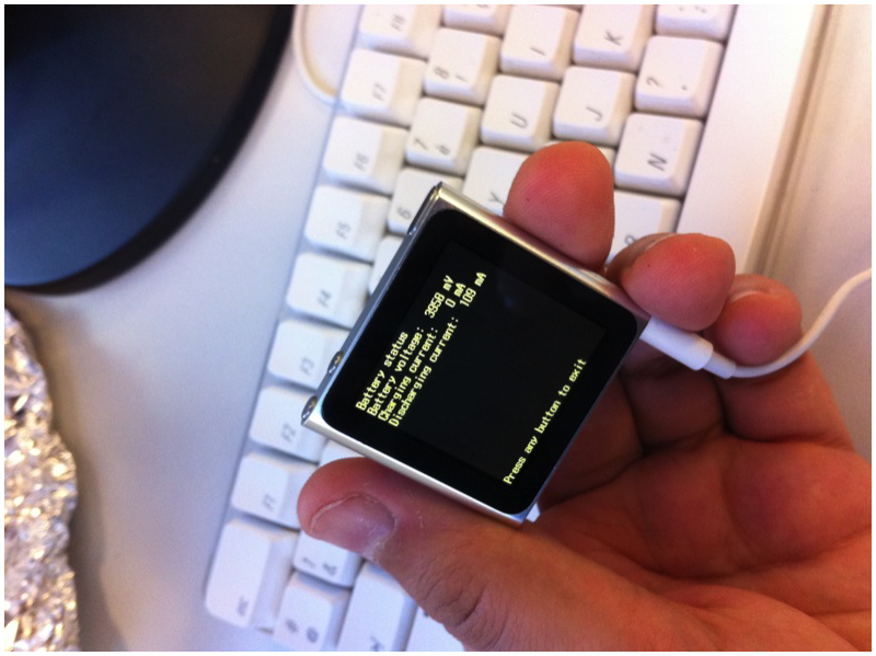 L’iPod nano 6G, comme ses prédécesseurs, a un mode diagnostic, alias iTerm. Dans ce mode, l’iPod nano est dans une interface très DOS, qui donne accès à des informations sur la consommation, l’écran, l’accéléromètre, etc.