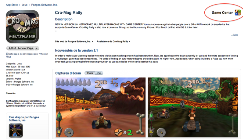 Une petite dernière avec iTunes 10.0.1, les applications compatibles Game Center ont maintenant un indicateur visuel, en plus d’être dans une catégorie spéciale.