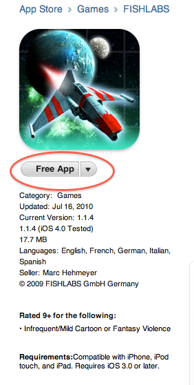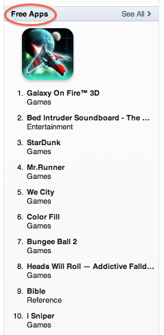 Une fois le Store choisi, se rendre dans la partie App Store et aller en bas à droite de la fenêtre, sur le Top de Free Apps. Prendre une application au hasard et cliquez sur Free App.