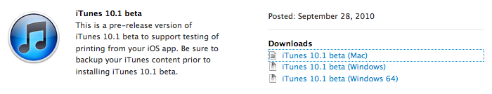 iTunes 10.1, dans sa version bêta, devient de plus en plus une usine à gaz : il sert aussi à partager une imprimante… A priori uniquement sous Windows (Mac OS X fait ça directement) mais tout de même… iTunes reste quand même à mon sens le pire produit d’Apple.
