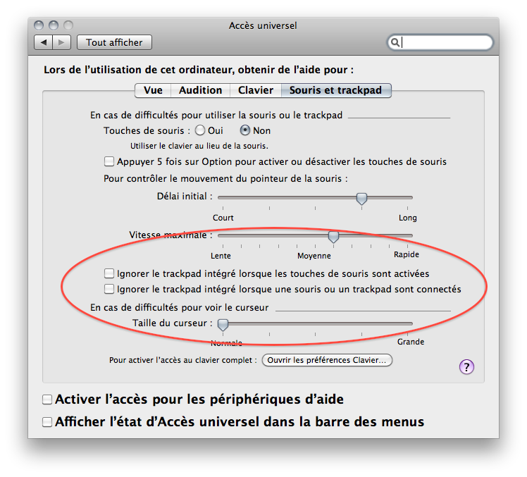 Si vous avez un portable Apple depuis longtemps, vous connaissez peut-être une option pratique : celle qui permet de couper le trackpad quand une souris (ou assimilé) est branchée. Problème, depuis le multitouch, cette option a changé de place.