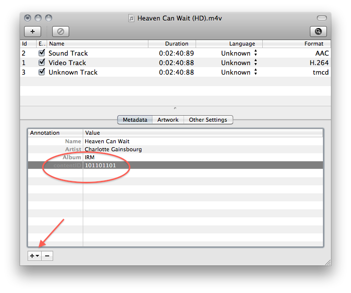 Troisième étape, ajouter — dans Metadata — un ContentID (via le + ) et lui donner une valeur numérique, au choix.