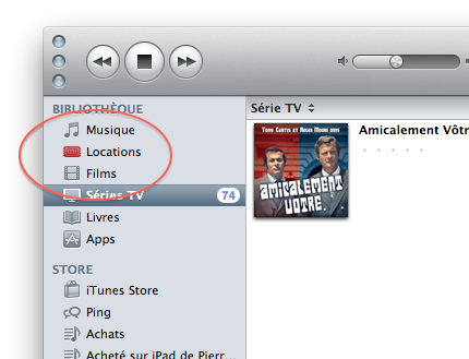 Quand iTunes 10 est sorti, le débat a porté sur un point précis : la couleur (ou plutôt l’absence de couleurs) des icônes du logiciel. Et pourtant, elles ne sont pas toujours en noir et blanc… En effet, petit truc pratique, l’icône des locations change de couleur quand une vidéo louée arrive en fin de vie : elle devient rouge. Je rappelle qu’une vidéo louée est valable 30 jours tant qu’elle n’a pas été jouée, et qu’une fois le bouton Play pressé, la vidéo peut être regardée pendant 24 ou 48 heures (selon l’appareil où la vidéo est lancée…).