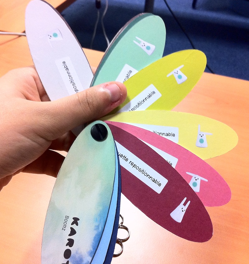 Mindscape devrait lancer, avec Karotz, un remplaçant pour les Ztamps. Les Ztamps, ce sont des étiquettes RFID à placer sur un objet, pour faire réagir le lapin ou le Mir:ror. Les Bookz seront un peu différent, ils se présenteront sous la forme d’un éventail contenant plusieurs pages, chaque page disposant de son tag RFID. Et sur chaque page, on pourra noter une fonction et l’activer en passant le tag devant le lapin. L’idée est de centraliser les fonctions RFID dans un seul objet. Ca semble assez pratique pour par exemple gérer les fonctions de téléphonie du Karotz.