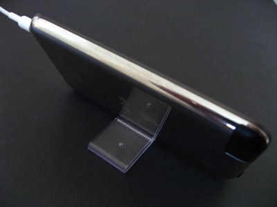 Si Apple n’a jamais proposé de dock pour l’iPod touch, le premier modèle content malgré tout un bout de plastique qui pouvait faire office de dock, le « stand ». Ce petit support en plastique permettait en effet de faire tenir l’iPod touch sur la tranche pour regarder une vidéo. Encore un petit détail disparu des boîtes des modèles suivants…