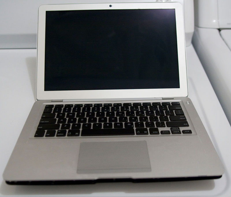 Aujourd’hui, un prototype un peu particulier : un MacBook Air de la première génération avec une coque en partie noire. L’ordinateur en lui-même est en aluminium, mais le fond est noir. Original.