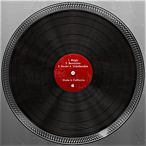 Dans Mac OS X Lion, il y a un Easter Egg, une référence cachée. En effet, une des nouvelles images pour l’avatar de l’utilisateur est un disque vinyle. Et sur ce disque, il y a — quand on zoome — les titres des chansons. « Magic » « Revolution » « Boom » et « Unbelievable ». Ceux qui ont déjà vu un keynote savent de quoi on parle…