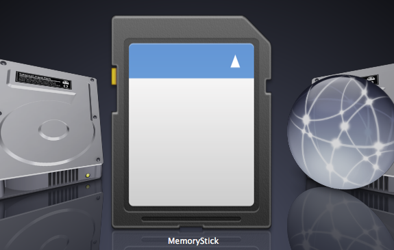 Attention à un petit bug cosmétique : comme Apple n’utilise que des lecteurs de cartes SD, l’icône par défaut sera une carte SD, même si votre lecteur accepte d’autres formats. Dans mon cas, le lecteur lit aussi les cartes Memory Stick mais elle s’affiche avec une icône de carte SD. Je n’ai pas trouvé comment changer l’icône en fonction de la carte, mais il est possible de forcer une icône en particulier.