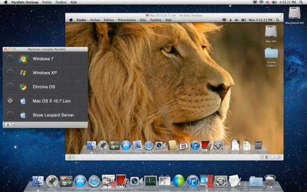La dernière version de Parallels, un logiciel de virtualisation, permet (enfin) de virtualiser Mac OS X. En effet, depuis la sortie de Lion, il est permis de virtualiser Mac OS X avec une licence classique tant qu’on reste avec Mac OS X comme système client. Je ne vois pas trop l’intérêt de virtualiser Lion (Snow Leopard à la limiteur les applications PowerPC…) mais bon, ça fonctionne.