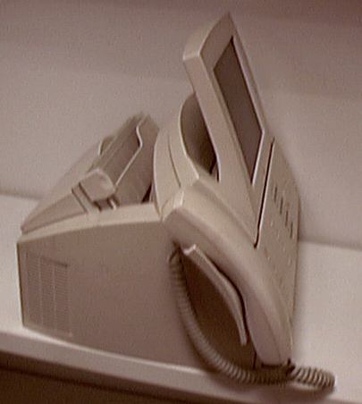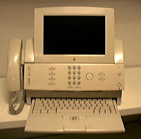 A charming prototype, the Paladin. It’s a kind of desktop machine combining a telephone, fax, printer, scanner, and of course, a Mac. Technically, it’s based on a PowerBook Duo 230, a machine equipped with a 33 MHz 68030 processor running on System 7.1. Naturally, it comes with a keyboard, featuring the usual trackball of that time.