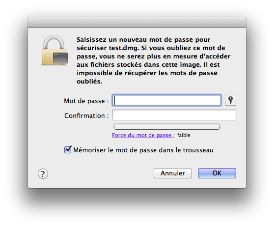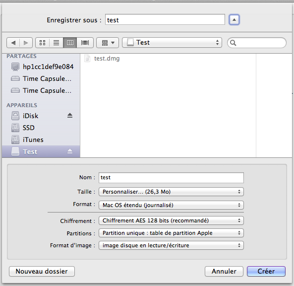 Sous Snow Leopard, au lieu de chiffrer la partition, on va créer une image disque chiffrée qu’on va placer sur la clé USB. C’est assez simple.