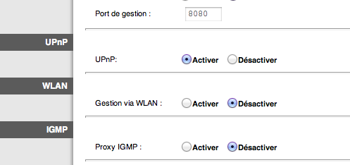 Mon modem Linksys propose par exemple une compatibilité UPnP dans ses menus.