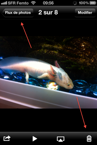 Petite nouveauté (attendue) dans iOS 5.1 bêta 2 : on peut (enfin) supprimer une photo dans le flux de photo iCloud. Actuellement, le seul moyen d’en effacer une est d’effacer tout le flux, ce qui est peu pratique. Avec la bêta, il est possible, en se rendant dans Flux de photos, d’en effacer une rapidement, avec une mise à jour sur les autres appareils dans la minute. Pratique.