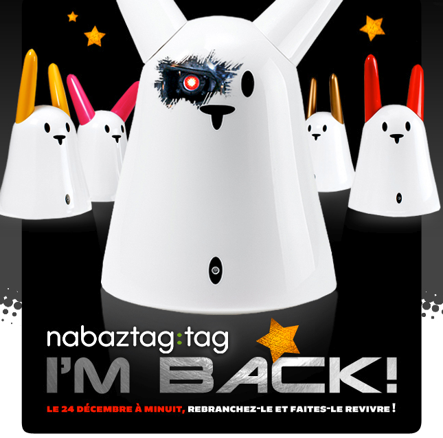 Joli cadeau de la part d’Aldebaran : les Nabaztag/tag (ceux avec le nombril) seront ressuscités le 24 décembre à minuit.