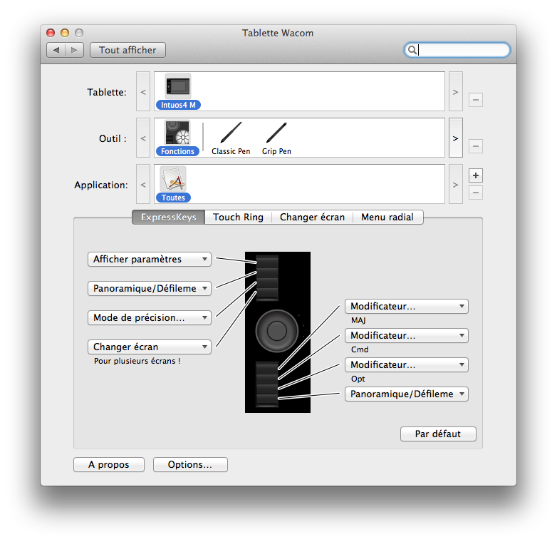 Une fois que c’est fait, il suffit de se rendre dans les pilotes et de changer l’assignation des boutons (et donc des images). Pour le faire, c’est dans Outils -> Fonctions.