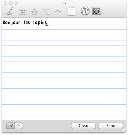 Ink est une fonction qui ne s’active que si une tablette est branchée, a priori une Wacom. je ne sais pas si ça fonctionne avec un autre modèle. La technologie permet (plus ou moins) de reconnaître votre écriture et de faire des petites notes rapides à insérer dans des documents. Pour information, la technologie est a priori héritée de celle du Newton, donc ça date… Et visiblement, Apple ne peaufine pas son OS : certains menus de Ink sont encore en anglais…