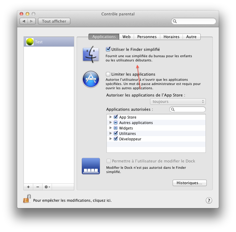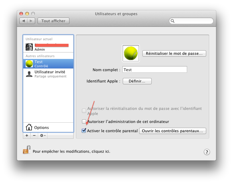 Pour l’activer et tester, il suffit de créer un utilisateur avec les contrôles parentaux activés.
