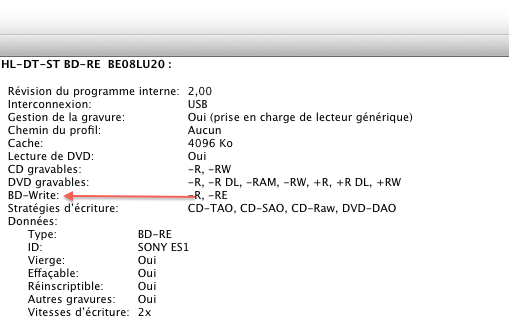 Plus gênant, les traductions. Même si mes exemples sont sur des choses rarement utilisées, je trouve que les oublis de traduction, c’est un peu vite énervant. La gestion des modems 3G este en anglais (depuis Leopard au moins). Ink (pour les tablettes graphiques) a des boutons encore en anglais. Et quand on branche un graveur de Blu-ray, on a « CD gravables », « DVD gravables » mais… « BD-Write ».