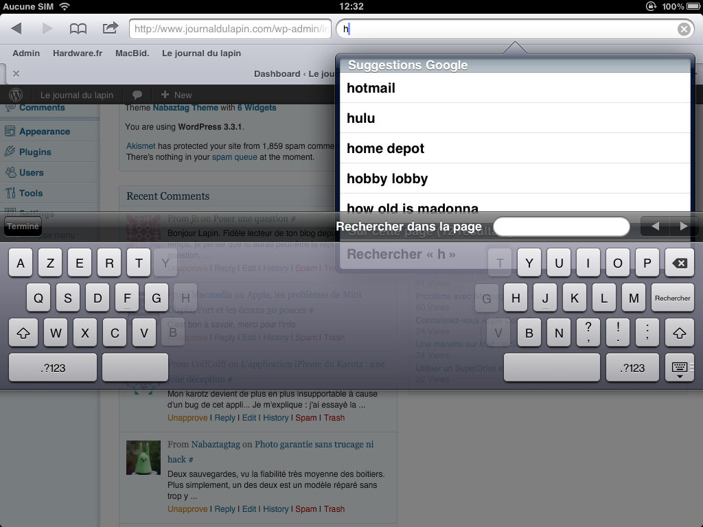 Amusant : le clavier de l’iPad propose des touches invisibles. Le clavier dissocié, très adapté à la frappe mobile cache en effet quelques touches.