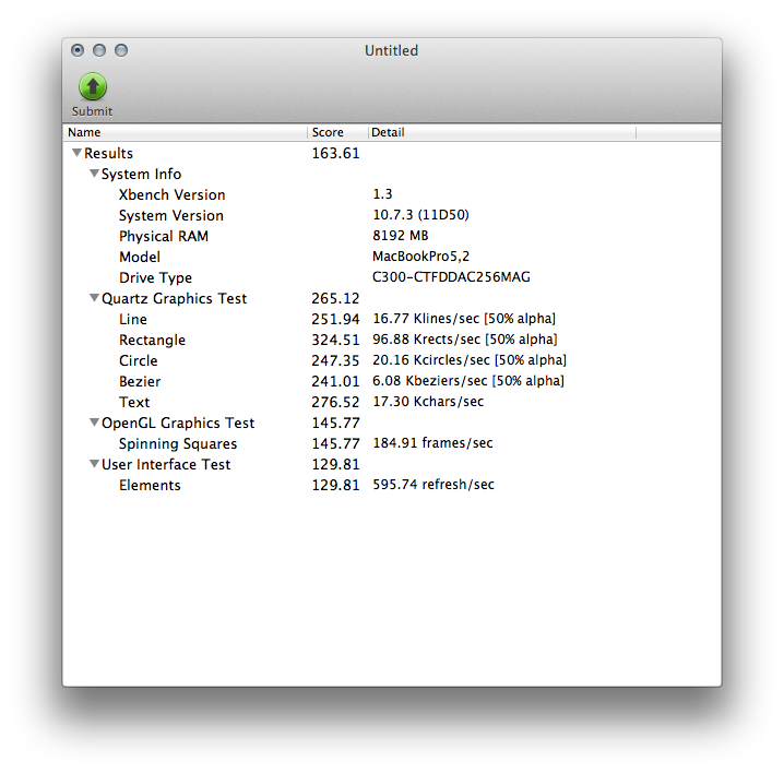 A simple example on Xbench : the graphic score passes from 163 with the IGP (GeForce 9400M) to 171 with my MacBook Pro dedicated GPU (9600M GT). With the external GPU, equivalent to a 9600M GT GPU, it comes down to only 125. The impact is clear, even on light things.