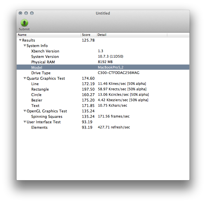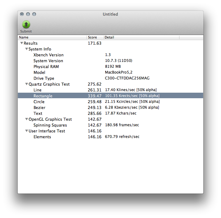 Exemple simple avec Xbench (qui vaut ce qu’il vaut) : le score graphique passe de 163 avec l’IGP (GeForce 9400M) à 171 avec le GPU dédié de mon MacBook Pro (9600M GT). Avec le GPU externe, équivalent au GPU 9600M GT, on descend à seulement 125. L’impact est clair, même sur des trucs légers.