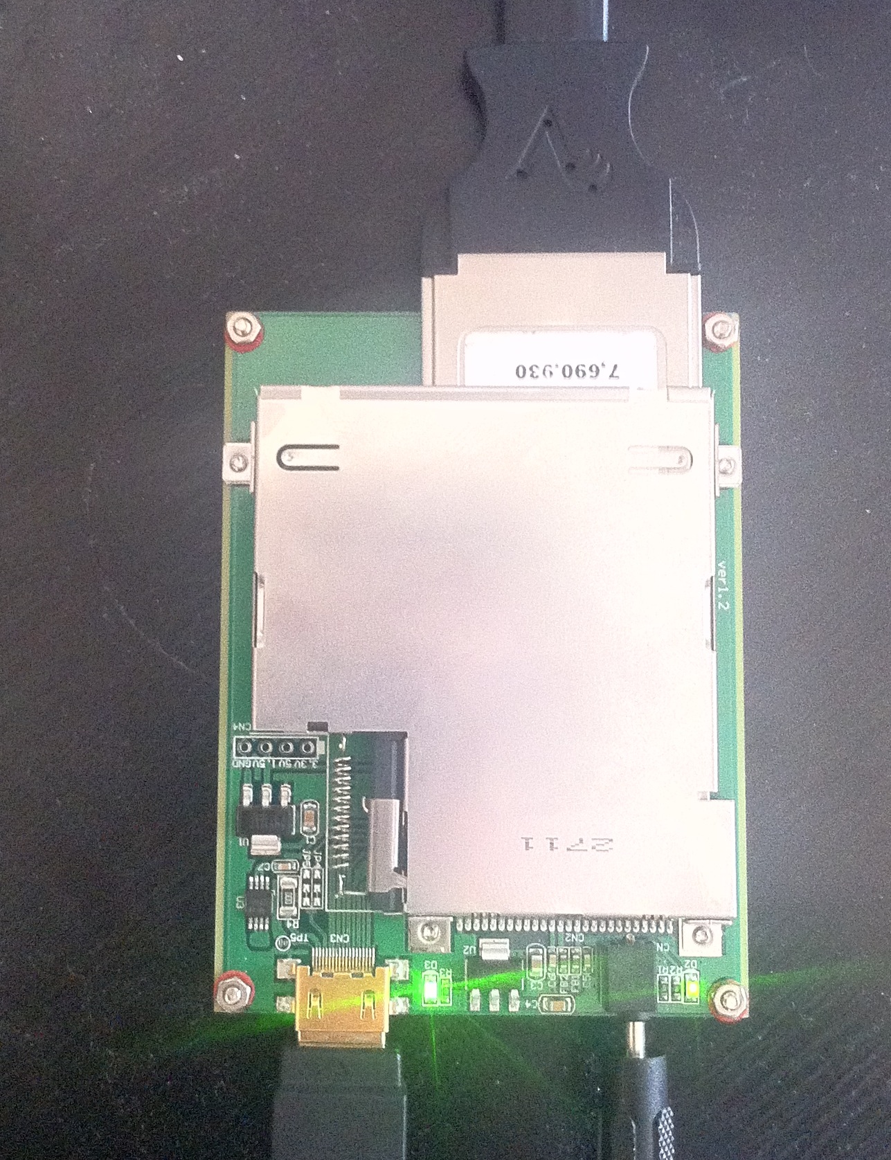 J’ai utilisé un adaptateur MR13 pour récupérer le PCI-Express et l’USB directement sur la carte mère du MacBook, dans l’emplacement de la carte AirPort et faire sortir le tout sur un lecteur de cartes ExpressCard. Ensuite, j’ai branché le boîtier et… ça marche.