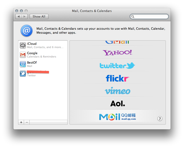 Dans les trucs sympas d’OS Mountain Lion, il y a l’intégration des services. On trouve Vimeo, Twitter, FlickR, quelques services Google, mais pas — assez étonnament — YouTube alors que le site est disponible dans les options de partage.