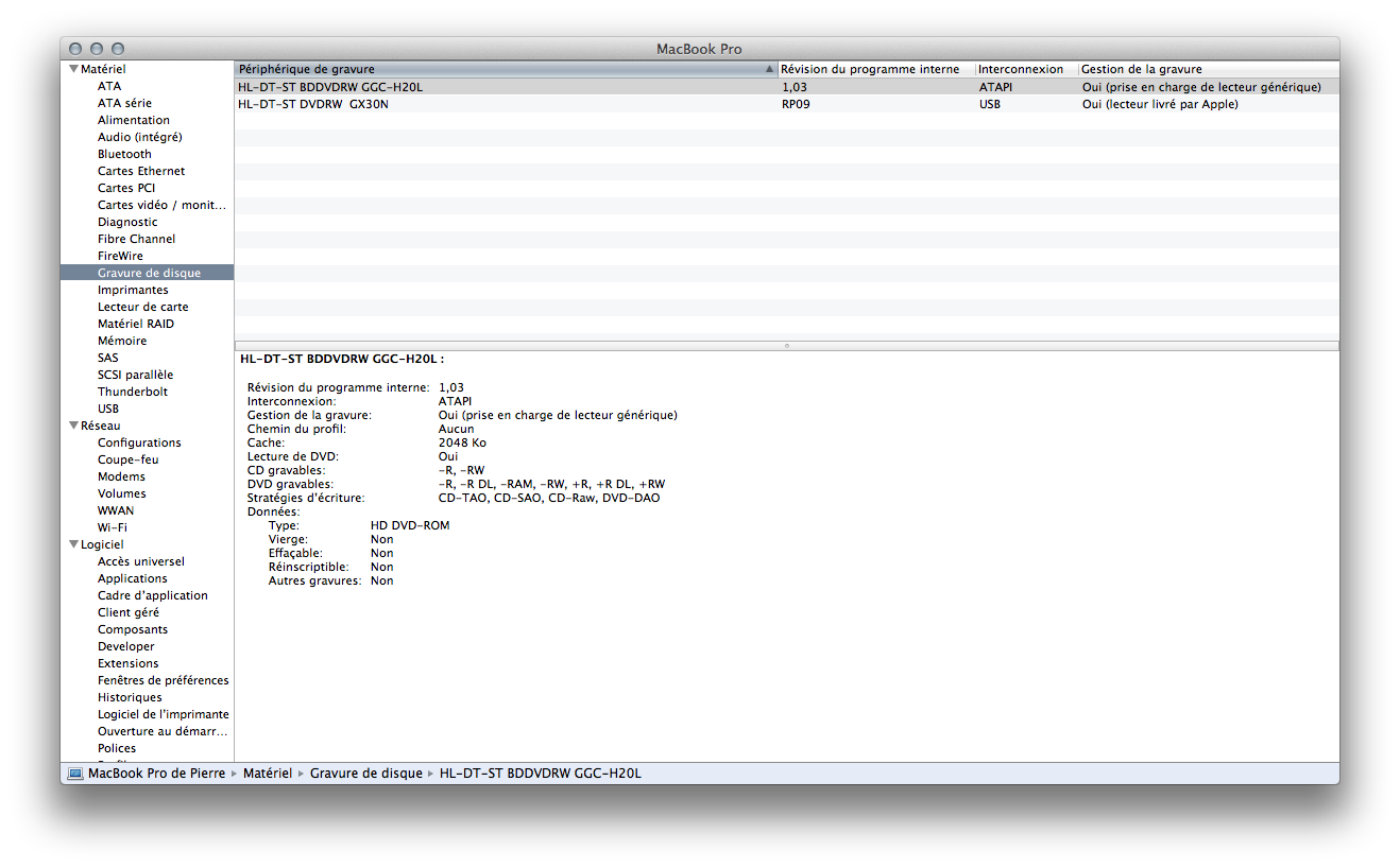 Par contre, Mac OS X n’en veut pas : il utilise même une icône de CD, alors qu’un OS comme Leopard avait des icônes adaptées aux HD DVD.