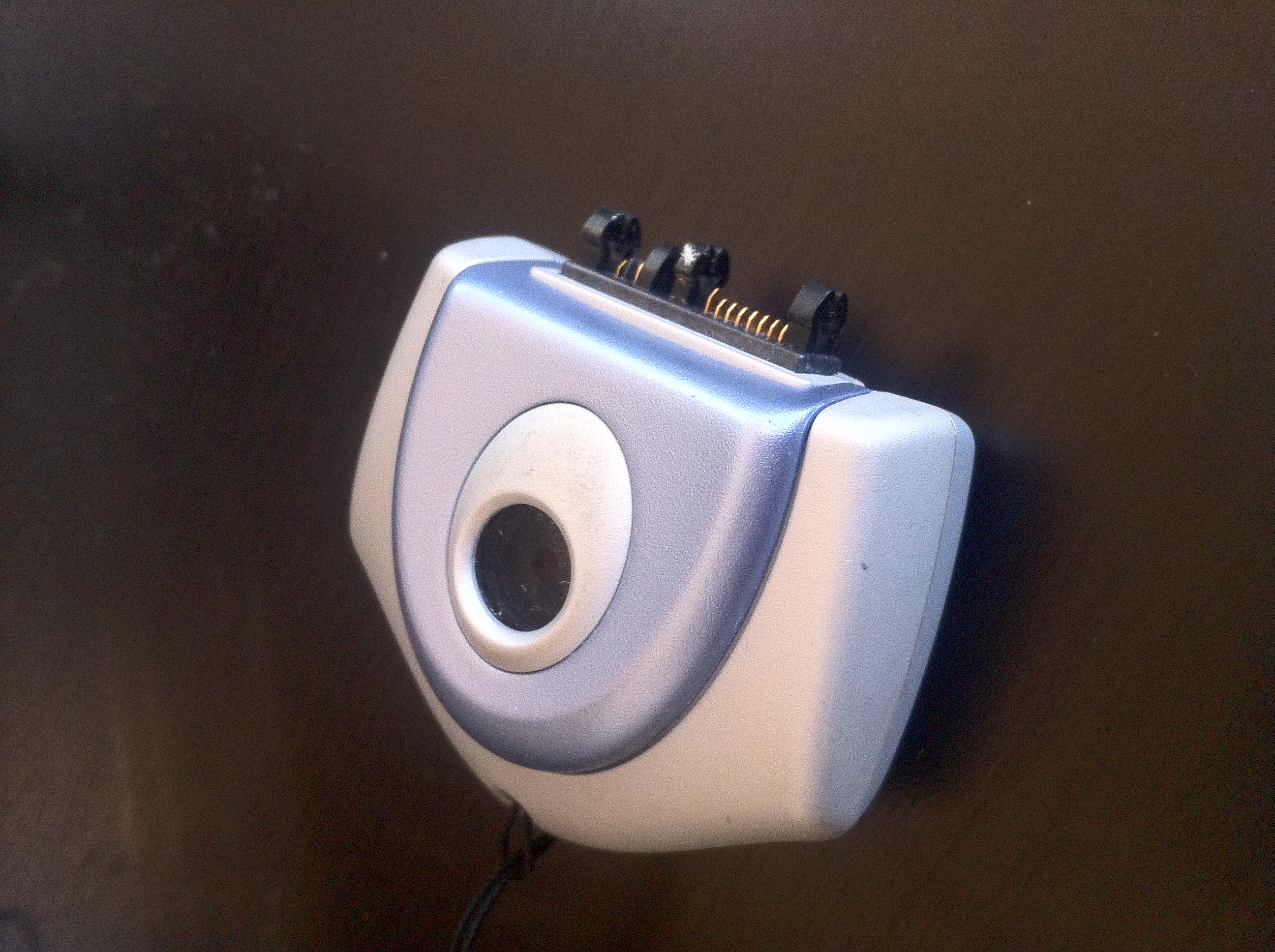 Vu qu’on se demande à quoi peut servir un appareil photo dans une tablette — et celui de mon iPad 3 sert de bloc-note assez efficace — je me suis posé une question : quels évolutions en 10 ans ? J’ai donc pris un des premiers modèles avec un appareil photo dans un tiroir : un Sony Ericsson T68i avec une Communicam. Cet appareil photo se branche au connecteur série du téléphone et permet de prendre des photos en… VGA.