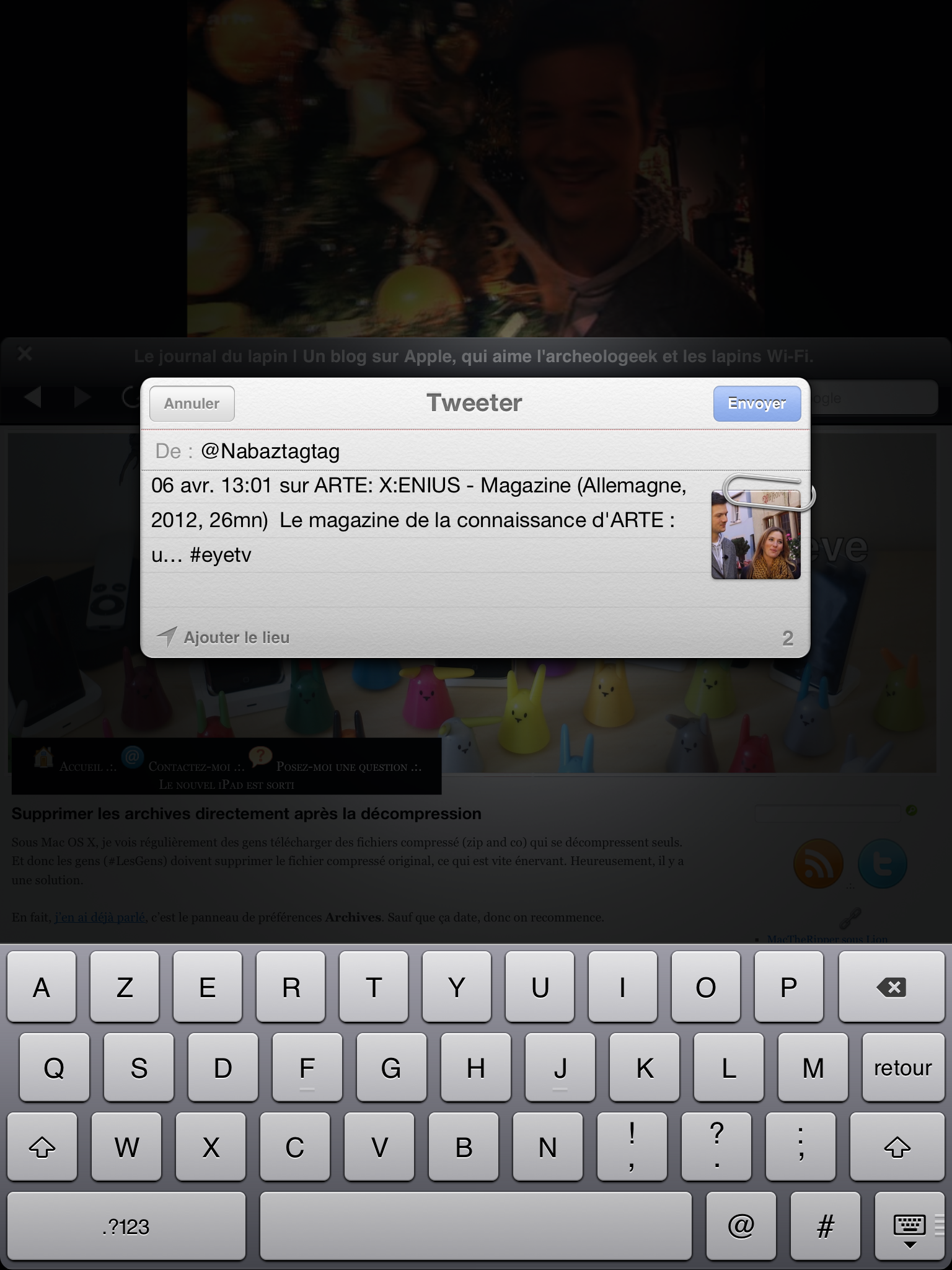Plus intéressant, il est possible d’afficher la télévision et un navigateur quand on passe l’iPad en mode portrait, ce qui est très pratique dans certains cas. Mieux, il est même possible de poster sur Twitter depuis l’application, merci iOS 5. Pour les amateurs de Live Tweet, c’est juste l’application idéale.