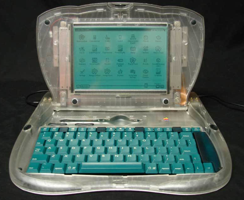 L’eMate fonctionnait avec l’OS des Newton (c’est un Newton avec un clavier) et avait une autonomie élevée grâce à son écran en 480 x 320 et 16 niveaux de gris. Le processeur à 25 MHz (un ARM, déjà) aidait aussi…