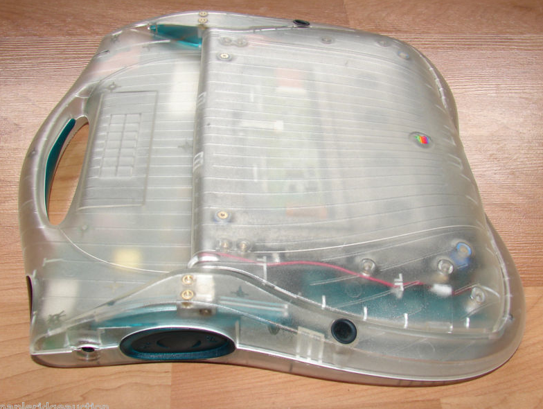 Sur eBay, on trouve de tout. Aujourd’hui, un prototype d’eMate 300, le premier appareil sur lequelle Jonathan Ive a travaillé. L’eMate 300 classique est en effet vert foncé (et préfigure l’iMac et l’iBook) et ce modèle est transparent. Selon le vendeur, Apple avait prévu des modèles rouges, oranges et violets, mais seul le vert est sorti.