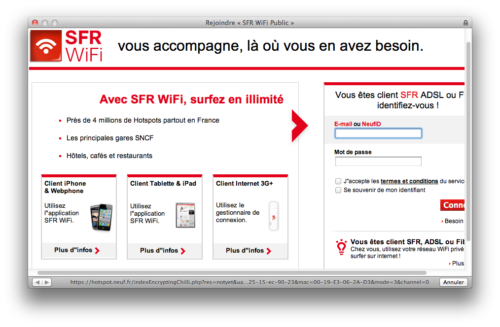 Depuis Lion (et iOS 3 je crois), Apple propose un assistant pour se connecter aux hotspots payants. La fonction se déclenche automatiquement et propose de se connecter en affichant une fenêtre flottante qui s’ouvre sur la page de connexion. Mais comment ça marche ?
