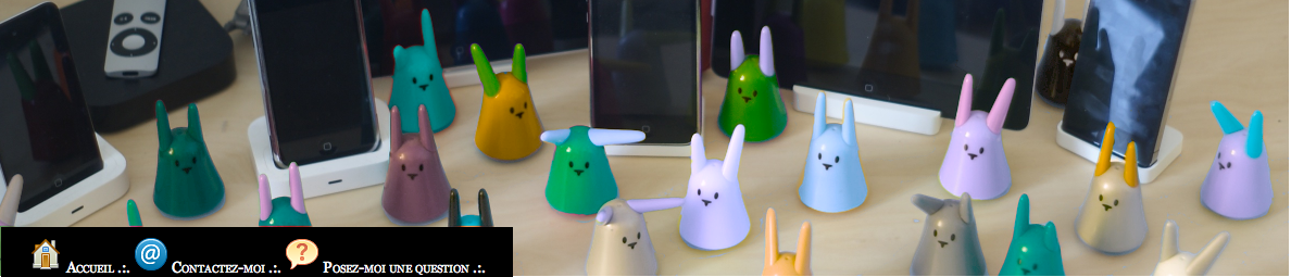 La première, c’est l’utilisation des filtres CSS pour changer la couleur des lapins dans le header. Ca doit marcher avec Safari 5.2, les versions récentes (bêta ?) de Chrome et avec Webkit. Il y a plusieurs effets et c’est aléatoire. C’est aussi assez lent à charger, ce n’est pas très optimisé.