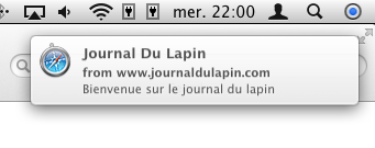 La seconde, c’est un support préliminaire des notifications de Mountain Lion. Même chose, ça passe avec Mountain Lion/Safari 5.2 et a priori avec Chrome qui supporte ça en interne depuis un moment.