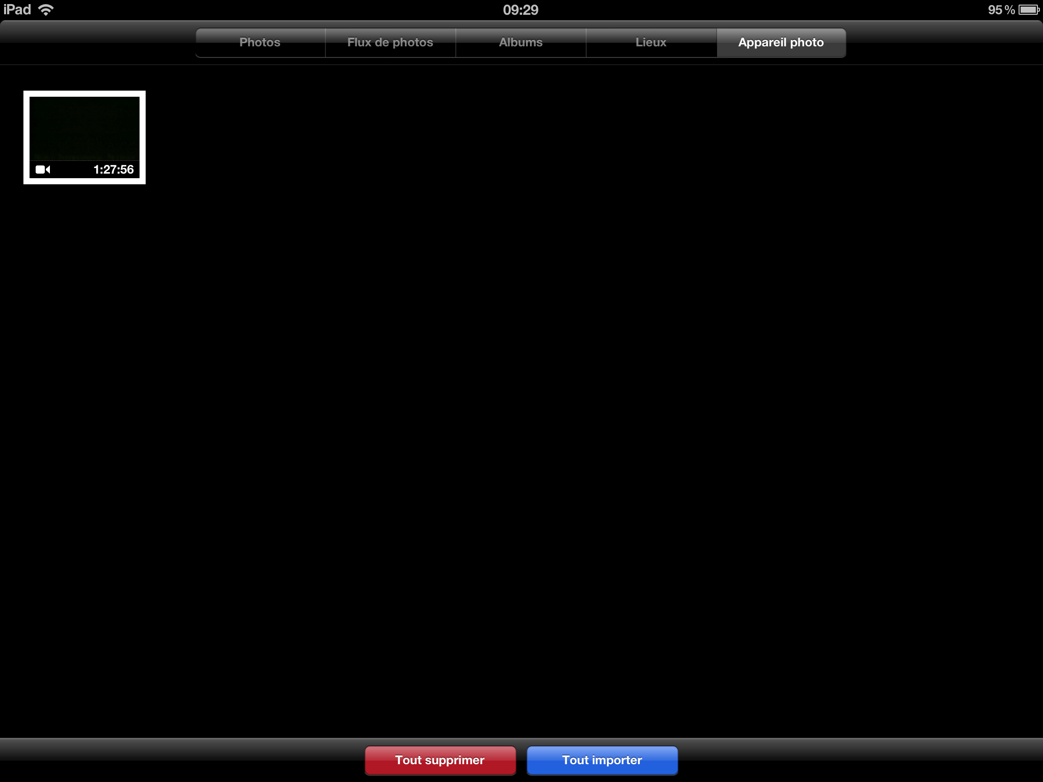 Une fois que c’est fait, la vidéo est accessible dans Photos (et pas dans Vidéos). Pratique pour mettre rapidement un film sur un iPad, même si ça reste du dépannage…