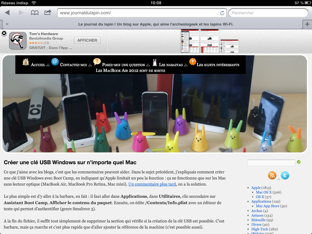 Une des nouveautés d’iOS 6, c’est la Smart App Banner. Une bannière qui permet de faire un lien vers une application en haut de page, sans infliger un pop-up du genre « on a une application iOS trop génial qui roxe des castors en slip » dès qu’on surfe depuis un iPhone.