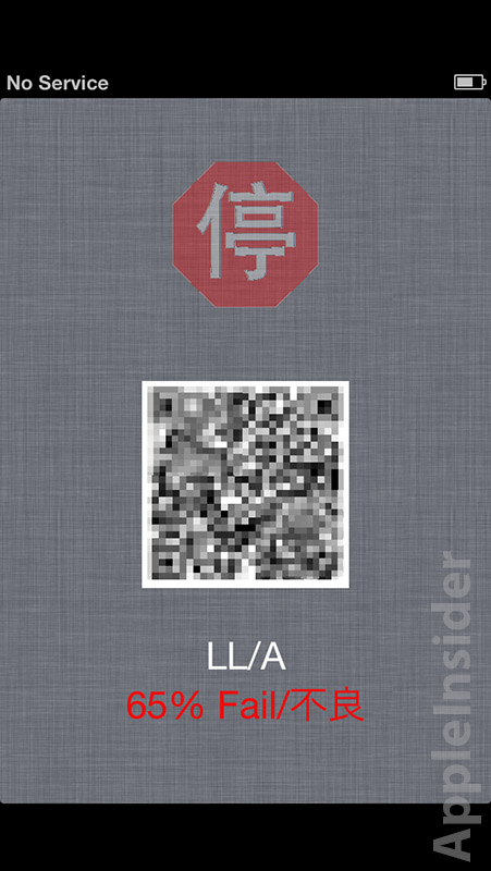 Out of the 5 million iPhone 5 units, at least one contains test images that the Chinese overlooked. The phone evidently did not pass the tests. The QR code contains information about the phone, including the IMEI.