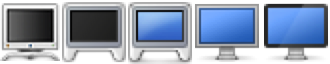 Commençons par les écrans. On a donc la DP3 de Mac OS X (un vieil écran cathodique), Mac OS X Bêta (un Cinema Display), Mac OS X 10.0 à 10.4 (un Cinema Display), Mac OS X 10.5 à 10.8 (un Cinema Display en aluminium) et enfin Mac OS X 10.8.1 à maintenant (un LED Cinema Display).