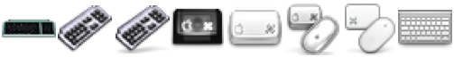 Enfin, il y a les claviers. Mac OS X Bêta DP3 (Apple USB Keyboard), Mac OS X Bêta (Apple Pro Keyboard), Mac OS X 10.0 (Apple Pro Keyboard), Mac OS X 10.1 (Apple Pro Keyboard), Mac OS X 10.2 (Apple Keyboard), Mac OS X 10.2.8 à 10.4 (Apple Keyboard et Apple Mouse), Max OS X 10.5 (Apple Keyboard et Mighty Mouse), Mac OS X 10.6 à maintenant (Apple Keyboard).