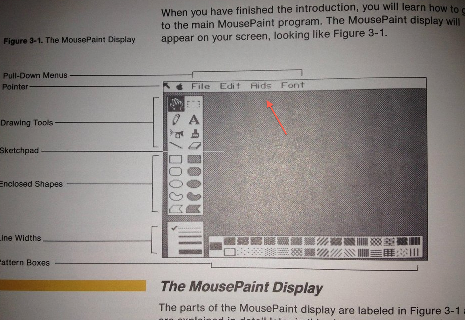 Oui, un titre bien racoleur. Au début des années 80, quand Apple a sorti MacPaint, il y avait à la base un menu AIDS (SIDA en anglais pour ceux qui ne suivent pas) dans les menus. Mais l’épidémie et la médiatisation de la maladie ont eu raison de ce menu, devenu Goodies dans la version finale. On trouve quelques images du menu original, comme dans cette photo d’un manuel de souris Apple pour le logiciel MousePaint, qui a eu le même menu.
